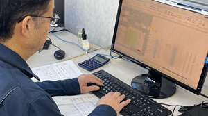 先輩と現場(2人1組)へ行きながら、機器操作・サンプリング・データ収集を徐々に習得します。